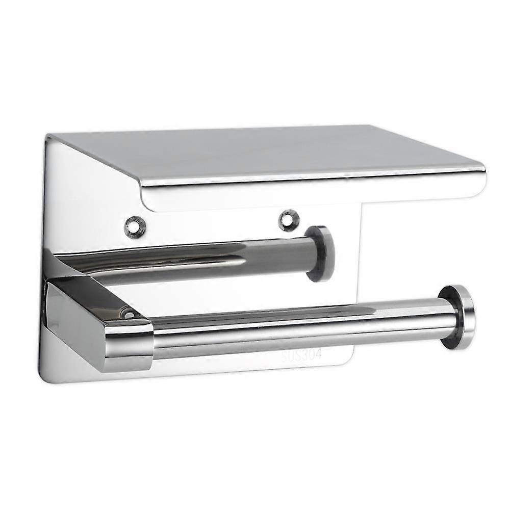 Toilettenpapierhalter mit Ablage in SILBER – Edelstahl Papierhalterung mit Ablage zum Bohren