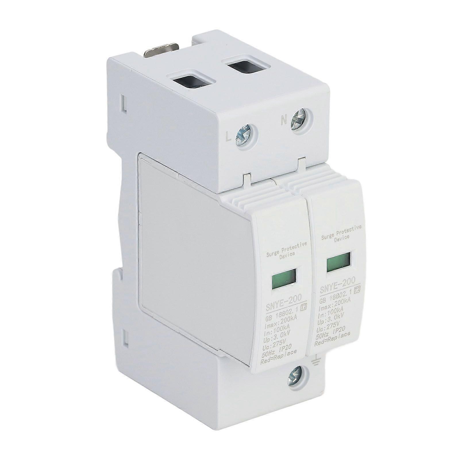 Surge Protector PC Shell Visual Window Insulated Terminal Plug in Design AC Protective Arrester Device White 200KA 2P 275V