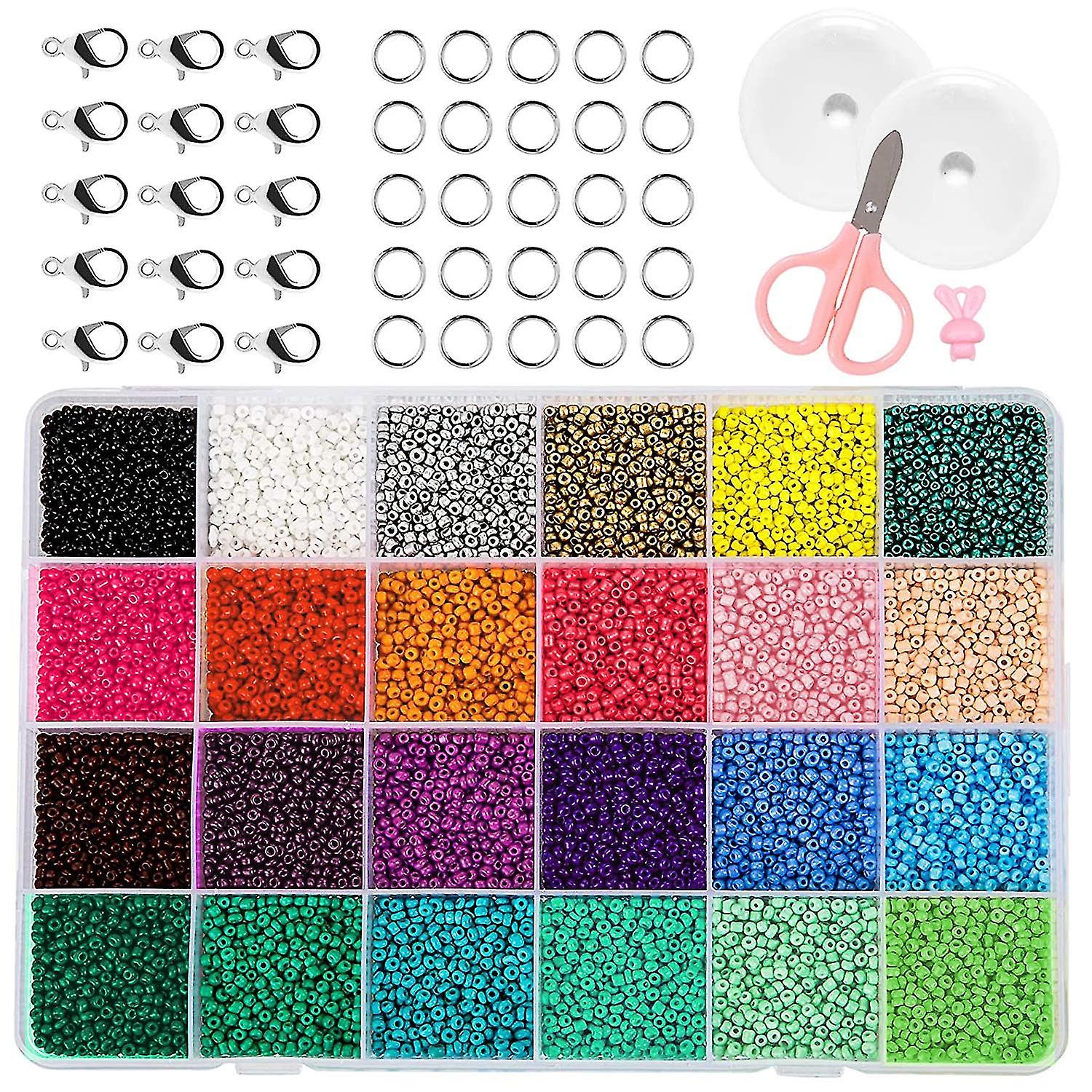 Mini Glass Seed Beads For Bracelets Jewelry Making And Crafts With Elastic String Cords, Scissors, And Storage Box, 2mm