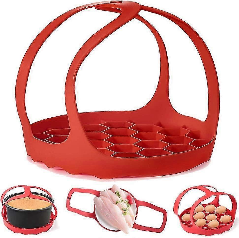 Material: food grade silicone. Dimensions: diameter: 20.3cm, height: 16cm. Kitchen utensil holder with simple appearance and colors shiny, suitable for use in the kitchen. Durable strap ensures safety when burning food out of pressure cookers. Our strap is designed to fit pressure cookers 6Qt/5.6L and 8Qt/7.5L electric kettles. Food Grade MaterialThe silicone wrap is made of heat resistant food grade silicone, help provide you meals healthy everyday. Healthy FoodCooking with silicone cookware in the pressure cooker can contain more nutrients than frying and microwave. MultifunctionSilicone sling compatible with 6Qt/5.6L and 8Qt/7.5L instant pots and multi cookers, can be used to steam eggs, vegetables, fish, meat, cake, yogurt, etc. No BurningDurable and reusable strap allows you to lift bowls, pans, pots safely and easily, no more burns or to use aluminum straps.