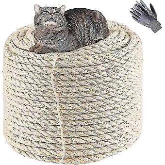 حبل السيزال 8 مم × 60 م ، حبل بديل طبيعي للقطط القديم بزوج من القفازات الواقية القط سكراتشي