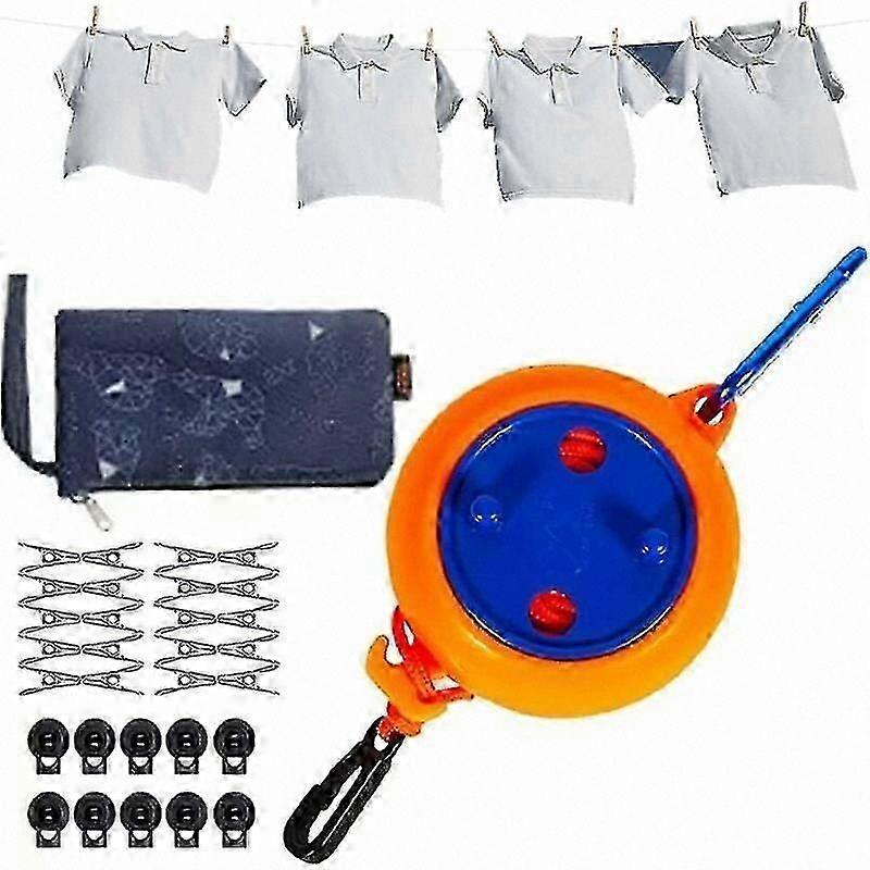 Travel Clothesline with Retractable Design, Portable Drying Line Featuring 10 Loops and 20 Clips for Camping and Outdoor Use
