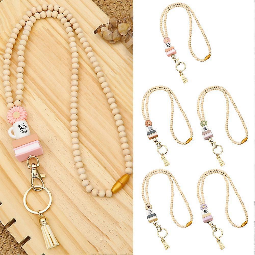 Teacher Lanyard with ID Holder, Fashion Wood Beaded Lanyard for Keys, Super