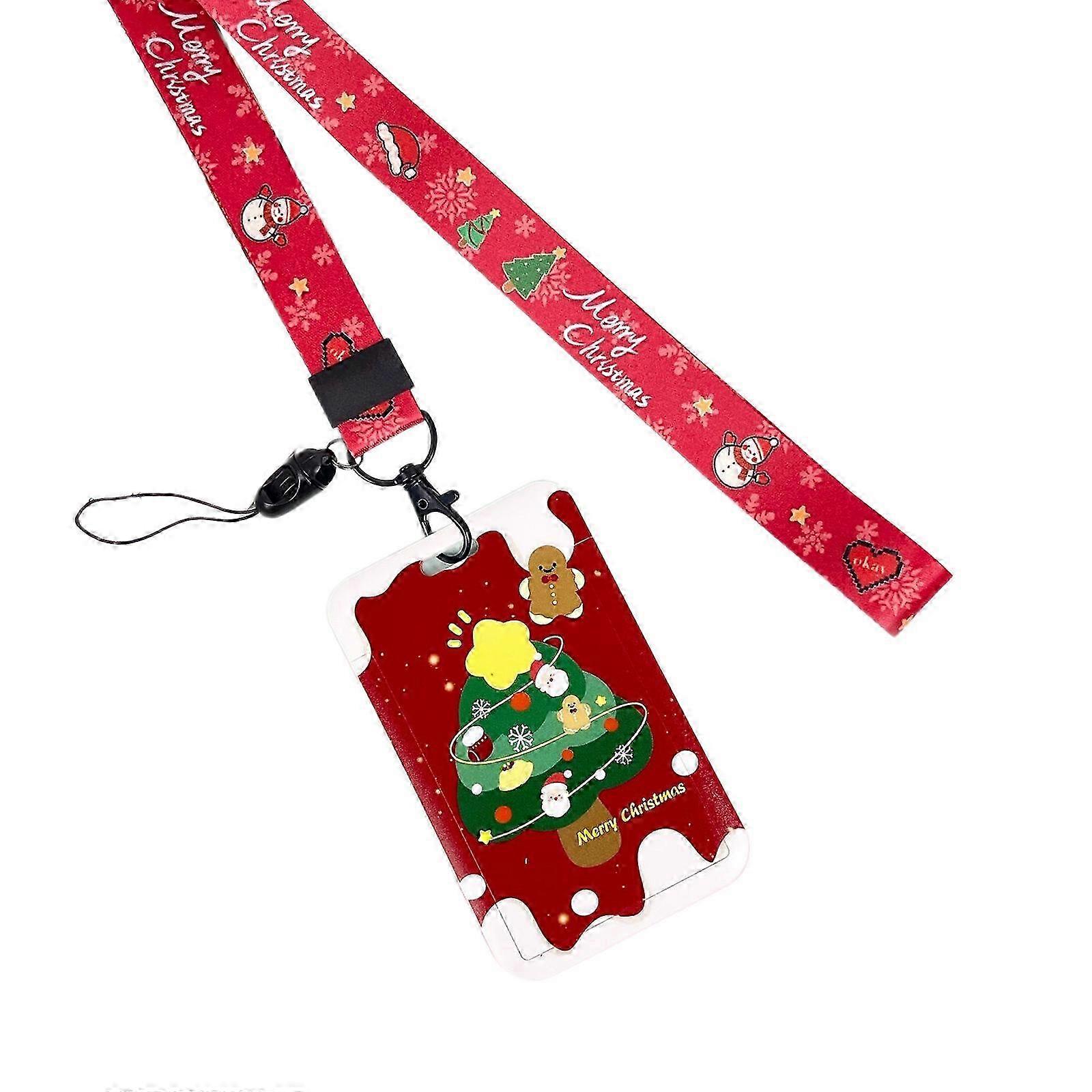 Christmas Key Lanyard with Card Holder Neck Strap Christmas Tree Snowman Badge Lanyard for Nurses Teachers Students