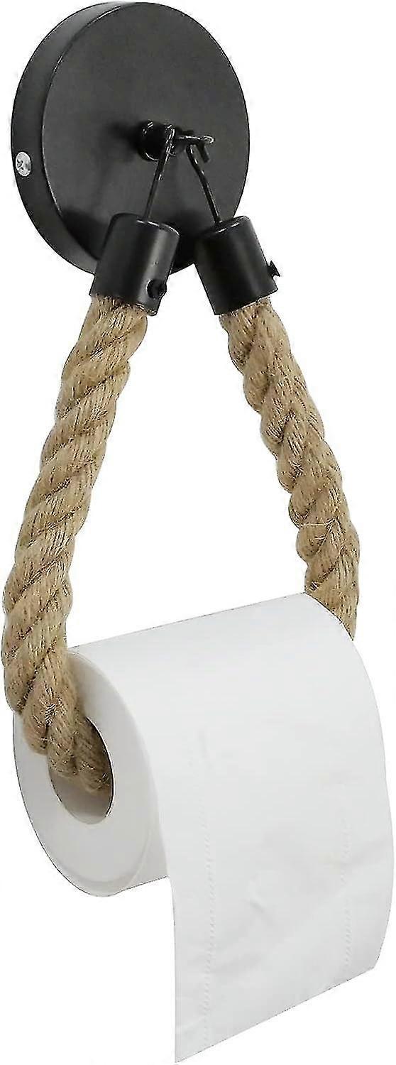 Rope Toilet Paper Holder Vintage Wall-mounted, Toilet Roll Holder Industrial Rope Hemp Rope Towel Rack With Metal Hook For Bathroom Fecoration