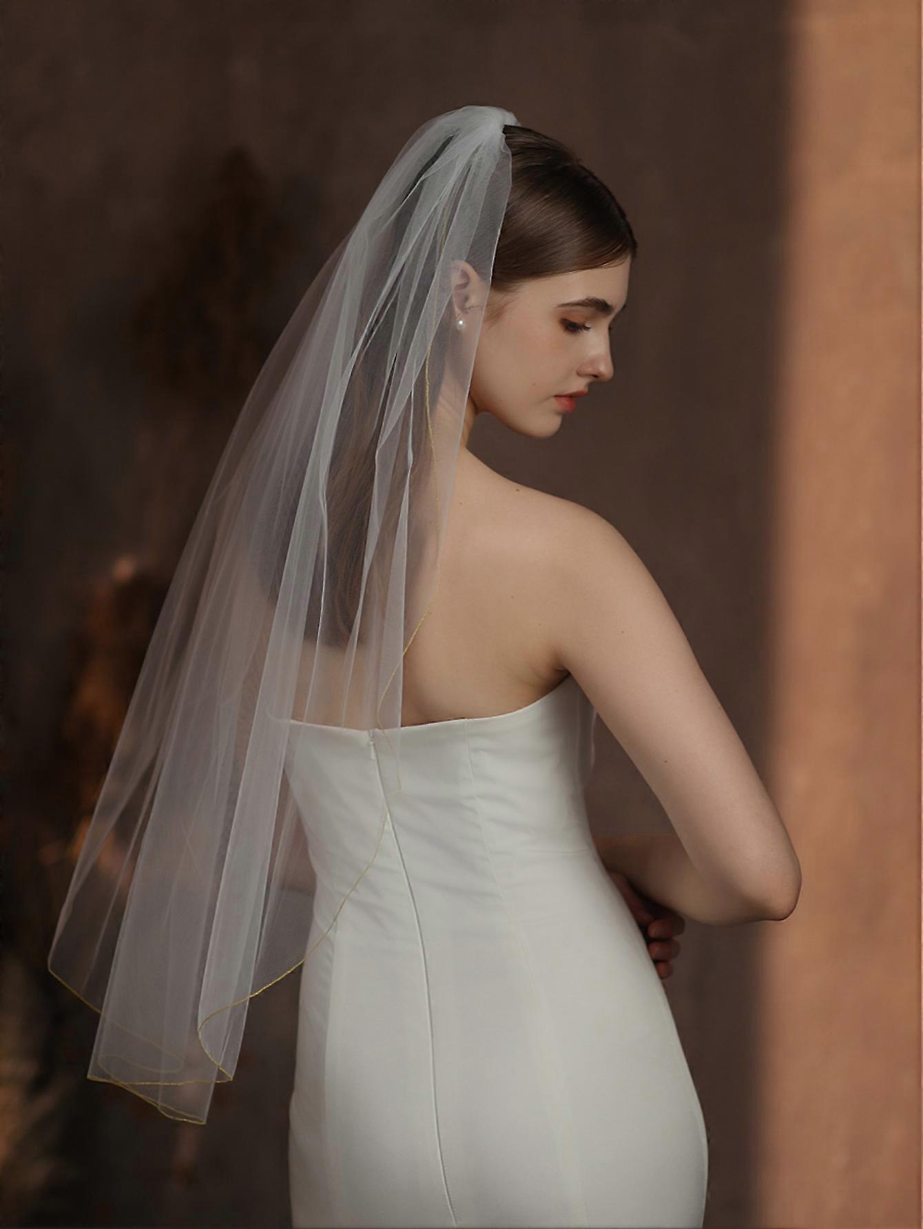 Single-layer bridal veil with gold trim, simple and elegant, white, delicately falling veil for wedding hairstyles and romantic looks