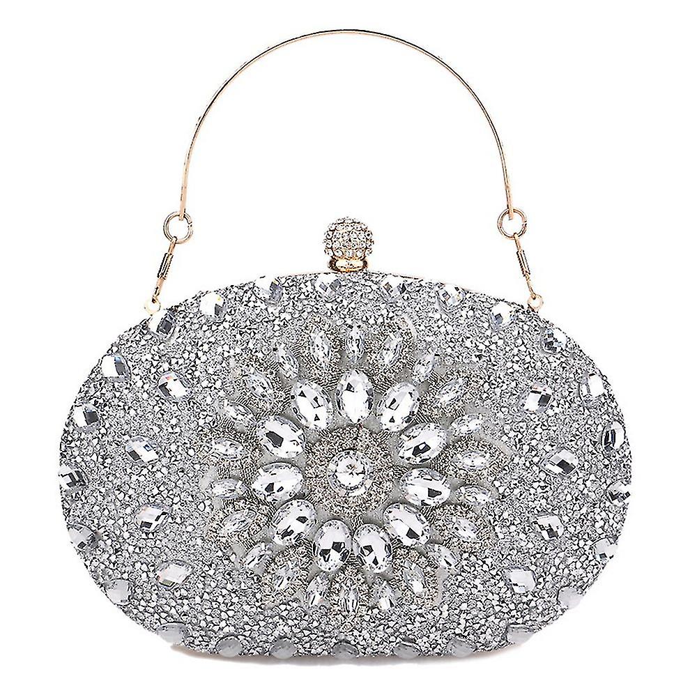 Material: Our women crystal clutches evening bags has a sunflower design on the front, which is composed of artificial gold gemstones and small diamonds. The back is gold frosting leather, which is more shiny under the light. The black satin lining is soft, smooth and comfortable. CHIC DESIGN: Elegant clutch purse with gold metal frame,cute crystal ball clasp, push-to-lock design,easy to open & close, showing a charming and noble temperament and make you look more fashionable and unique. PERFECT SIZE:Handmade crystal evening bag dimensions: 8"L x 5.5"H x 2.3"W( 20.5 x 14 x 6CM),Weight:0.46 KG(1 LB).One sturdy and removable metal shoulder O chains,length-47.24"(120cm). NICE CAPACITY: This women diamond evening bags interior space is perfectly fitting in 6.5 inches screens phone like: iPhone 14 Pro Max (with Slim Case), then thin and mini cosmetics, lipsticks, car keys etc.Light and easy-carried.