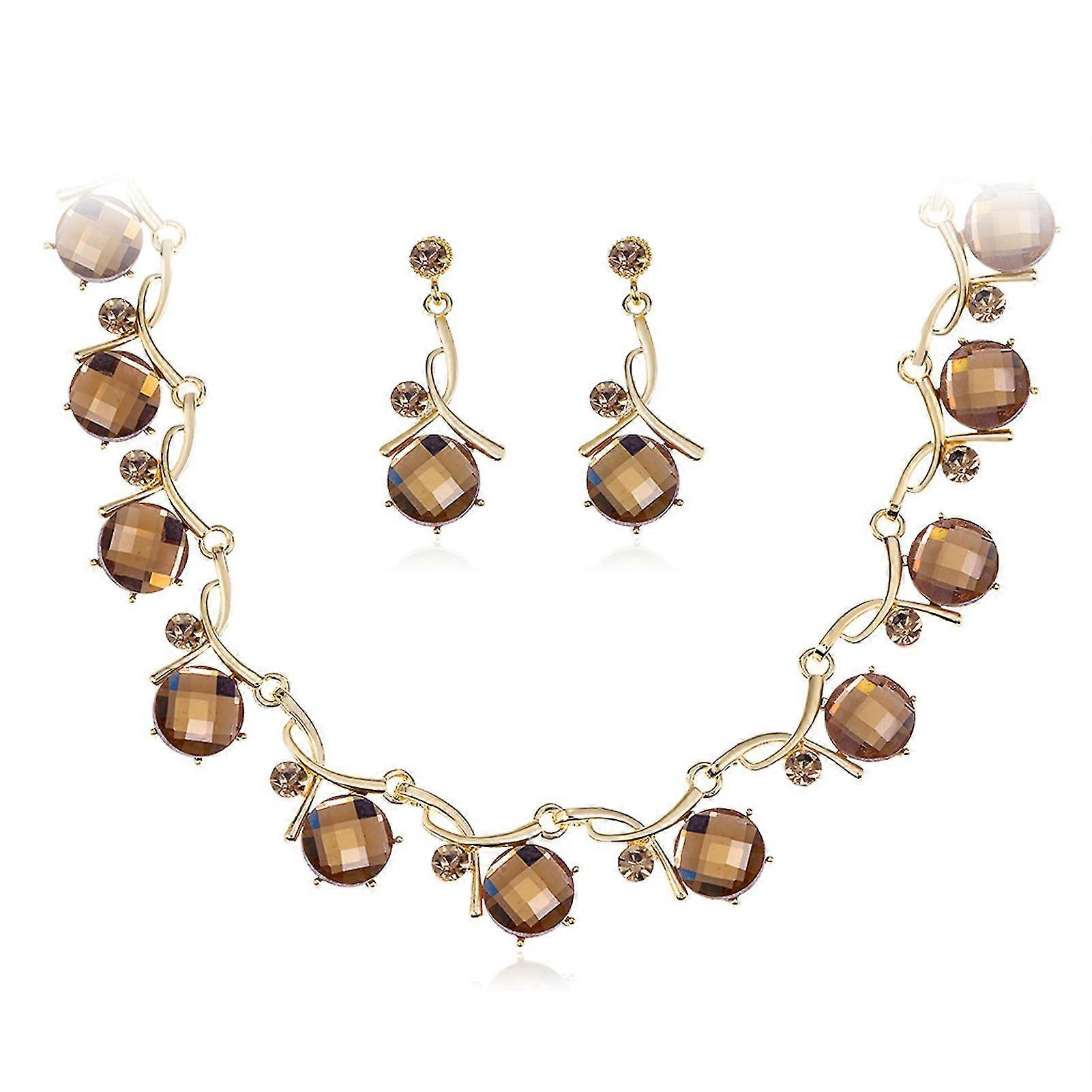 Rhinestone Necklace Earrings Set Water Drop Bridal Wedding Jewelry-khaki