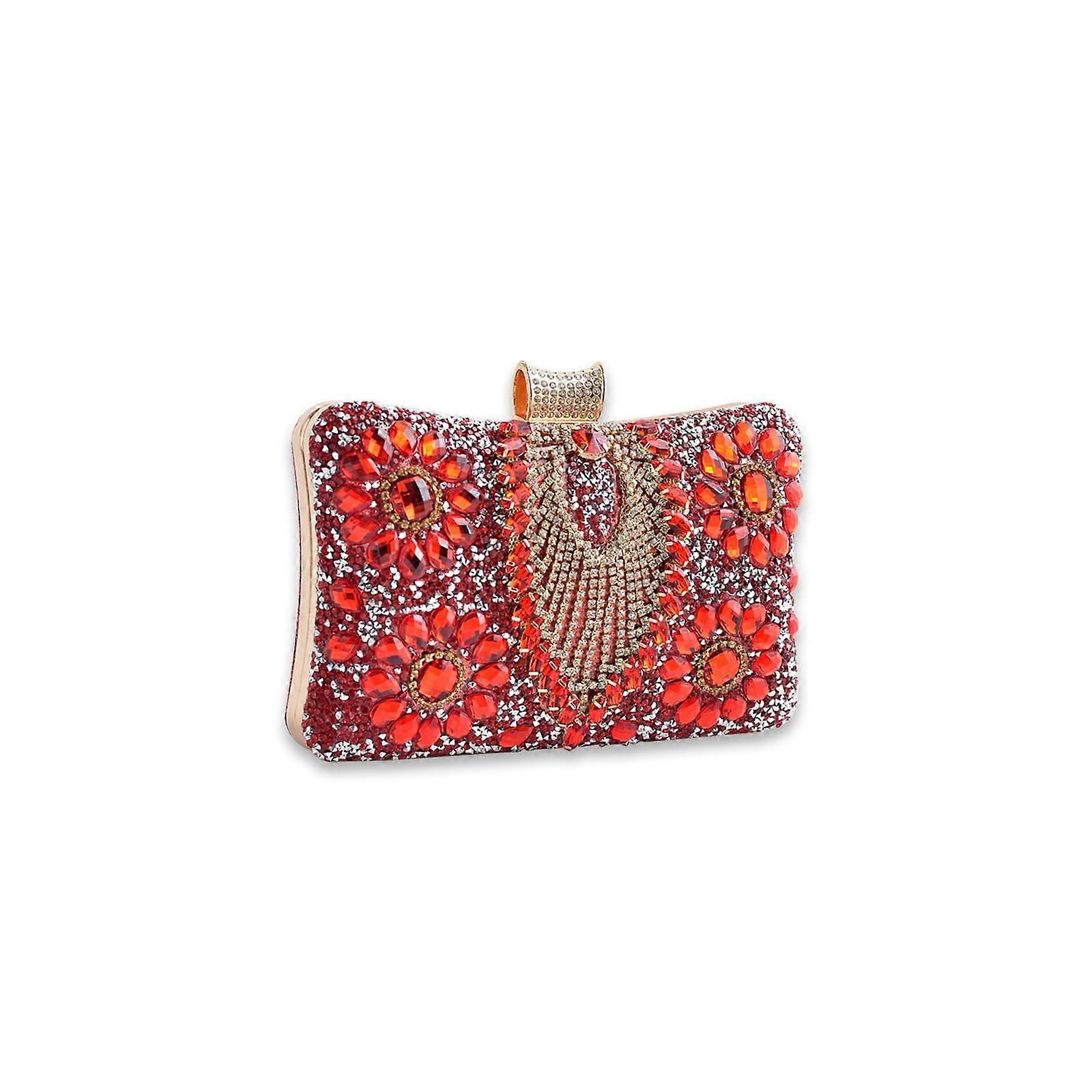 Rhinestone Clutch for Women Elegant Red Evening Bag Diamond Chain Shoulder Bag Small Purse for Prom Wedding Party