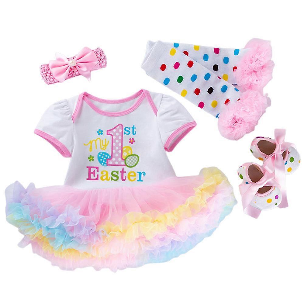 Newborn Infant Baby Girls My First Easter Tulle Dress + Headband + Shoes + Sleeve Cover Outfits Set