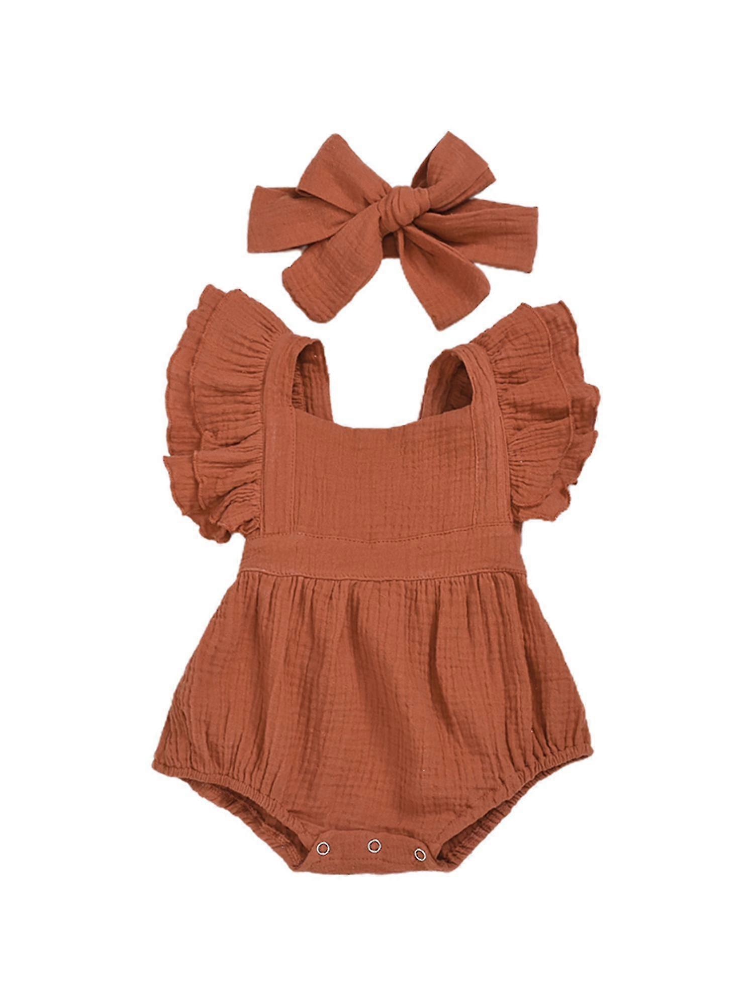 Newborn Baby Girls Jumpsuit Infant Romper Headband Outfits Set