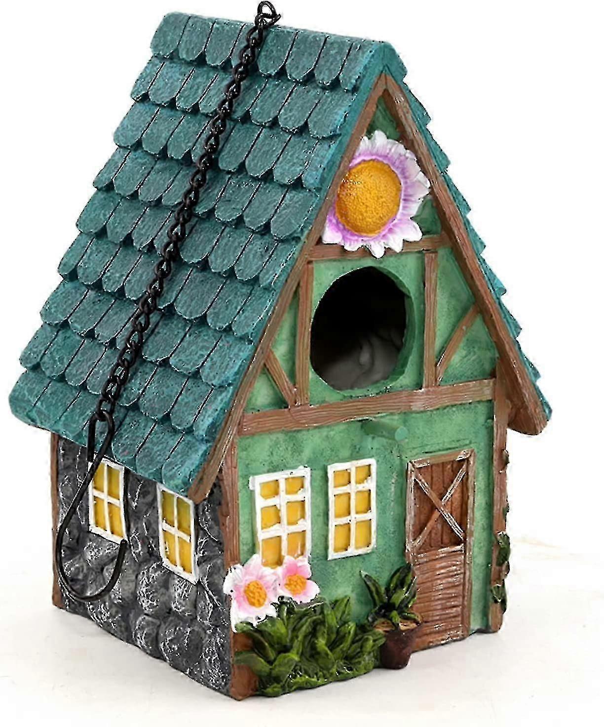Garden Bird House Decor Colourful Wild Bird Nesting Handmade Resin Decorative Birdhouse Ornaments Patio Outdoor Home Decoration