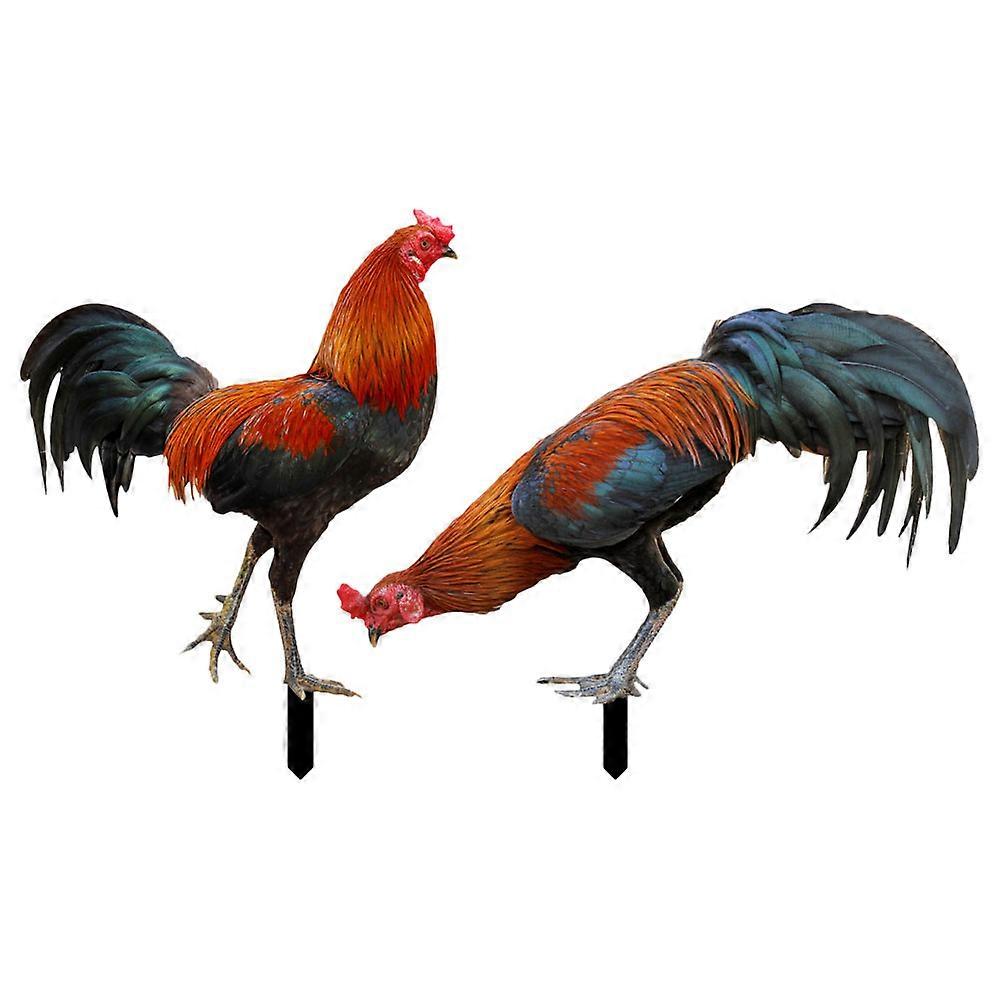 Garden Rooster Statues Sculpture 2Pcs Lifelike Animal Stake Assorted Color for Outdoor Use