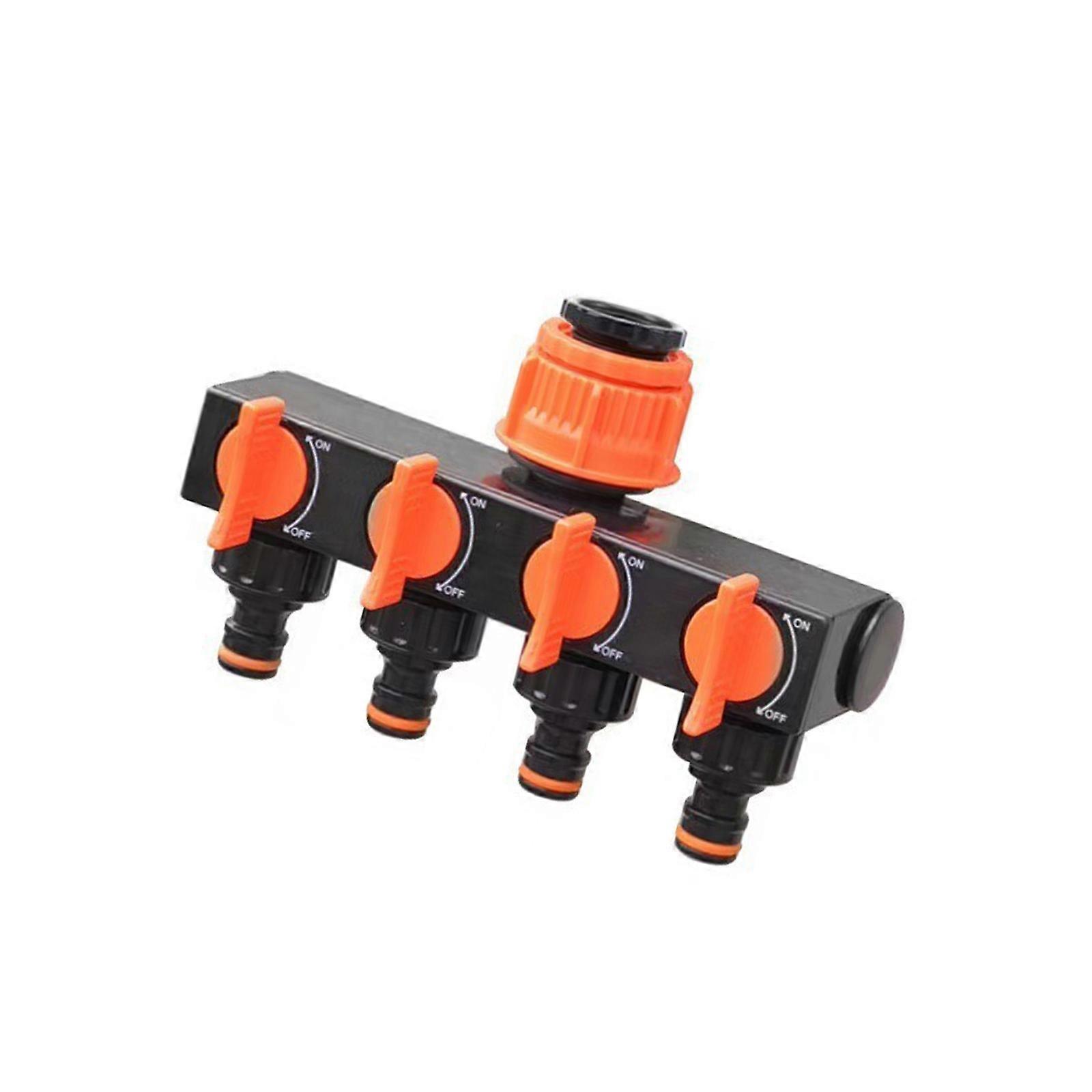 Garden Lawn Water Distributor Faucet One Into Four Out 4 Way Plastic Garden Water Distributor Watering Connector Orange Color