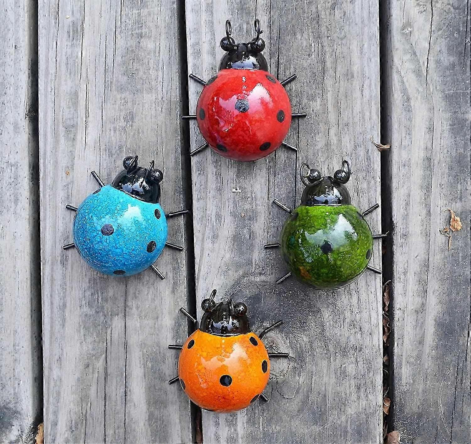 Metal Garden Wall Art Decorative Set of 4 Cute Ladybugs Outdoor Wall Sculptures
