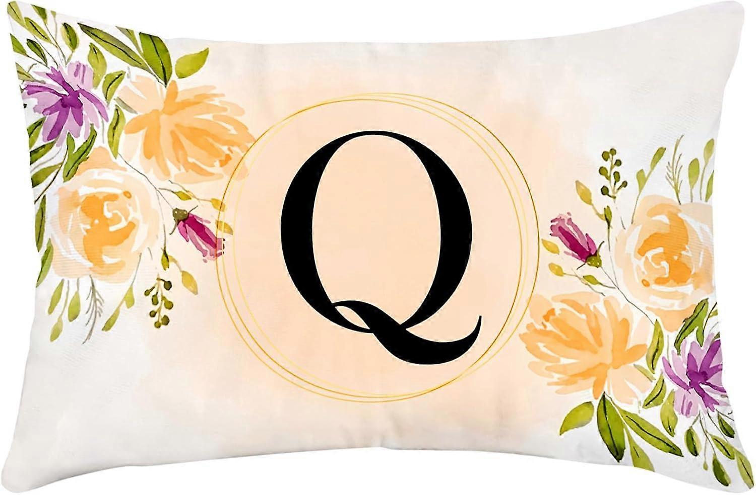 Monogram Letter Q Throw Pillow Covers Floral 12x20 Inch, Orange Flower Pillows Decorative Throw Pillows Pillowcase Farmhouse Decor for Couch Sofa, Fam