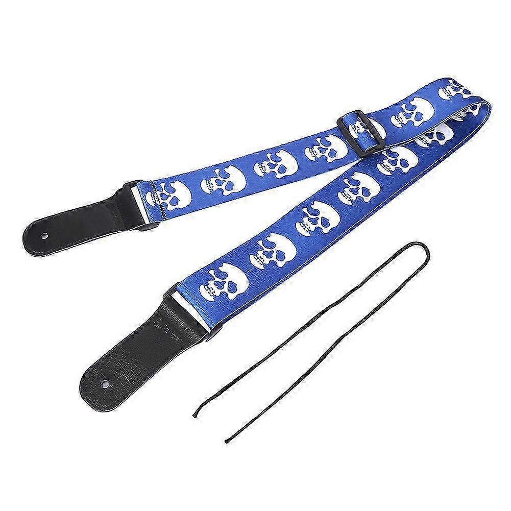 Guitar Strap Acoustic Electric Bass Ukulele Belt Adjustable Skull Pattern Leather HeadBlue