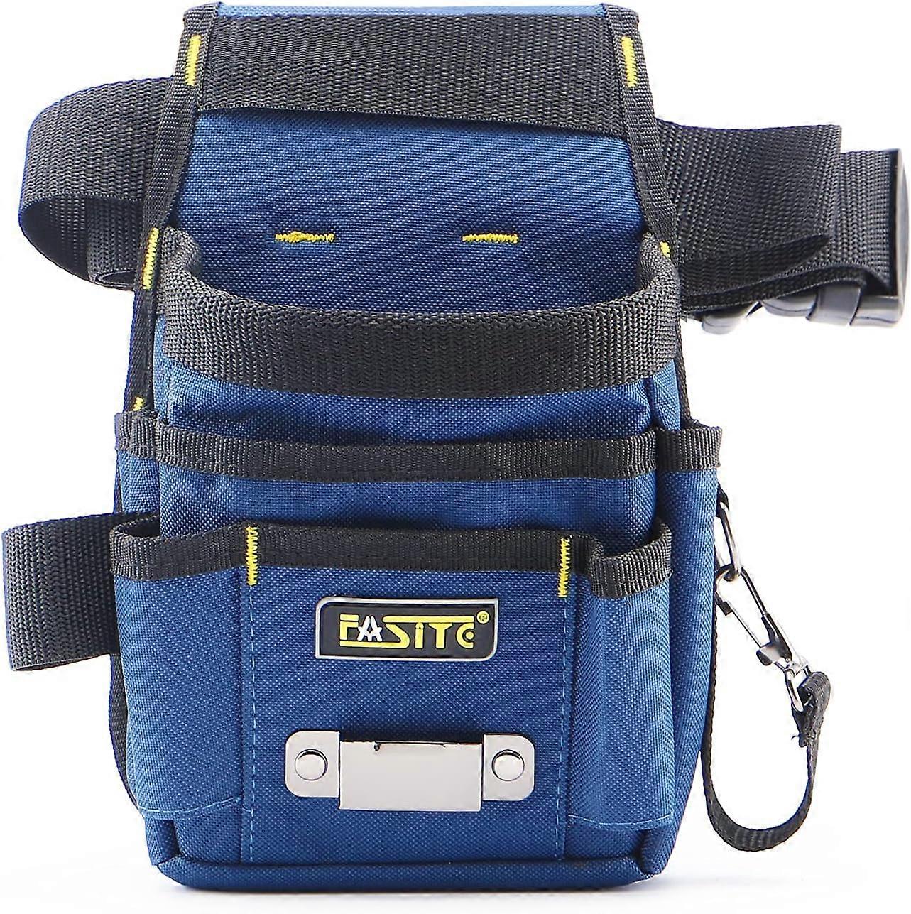 Dimensions -- 10.2 x 5.9 x 3.25 inches (approx. 25.9 x 15.0 x Reinforced Stitching - Each joint section is double or triple stitched for maximum durability. Durable Material--This multifunctional waist tool bag is made of high-quality 600D waterproof oxford cloth, which is lightweight and wear-resistant. Classifies most jobs - perfect for electricians, electricians, construction, contractors, carpenters, framers, plumbers, technicians and more. Elastic Waistband Removable and adjustable waistband with quick-release buckle makes it easy to hang the tool bag around your waist and adjust the size as needed. Multiple storage options--8 storage pockets with ample width and depth. Can firmly hold small tools and accessories such as pliers, mini flashlights, hammers, screwdrivers, multi-function tools, etc. NOTE -- Tools not included.