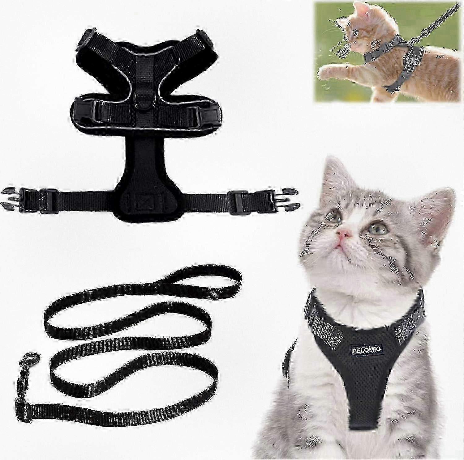 xxSafe and Comfortablexx C Made of soft, breathable mesh to prevent injury while keeping your cat cool. Reflective strips ensure visibility at night. xx360 Secure Fitxx C Vest-style design evenly distributes leash pressure across the chest and shoulders, avoiding neck strain or choking. xxAnti-Escape Designxx C Adjustable straps prevent slipping, making outings safer and reducing your pet's anxiety. xxEasy to Wearxx C Lightweight and quick to put on, ideal for walks, training, or outdoor activities. (Tip: Use treats to help your cat adjust.) xxSizing Guidexx C Measure your cats chest snugly, then add 2-3cm for comfort. Choose a larger size if between measurements. xxIncludesxx C 1 harness and 1 leash. xxDetailsxx: - Material: Fabric - Color: Black - Size: XS - Reflective strips for low-light safety. xNote: Check the size chart before ordering.x Note: Due to the light and screen setting difference, the item's color may be slightly different from the pictures. Please allow slight dimension difference due to different manual measurement.