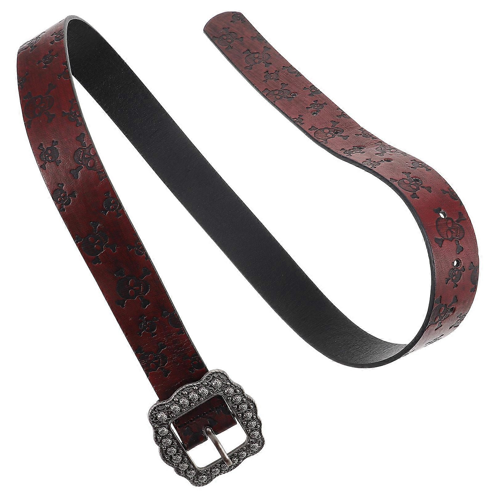 Goth Belt For Women Vintage Embossed Pu Belt Dark Red Square Buckle Engraved Western Style 1Pack