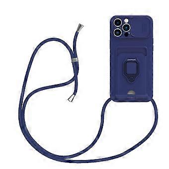 Crossbody Strap for iPhone 15 Pro Max/15 Ultra Case with Card Holder Ring Kickstand, Scratch-Resistant Shockproof Slide Lens Camera Protection Case