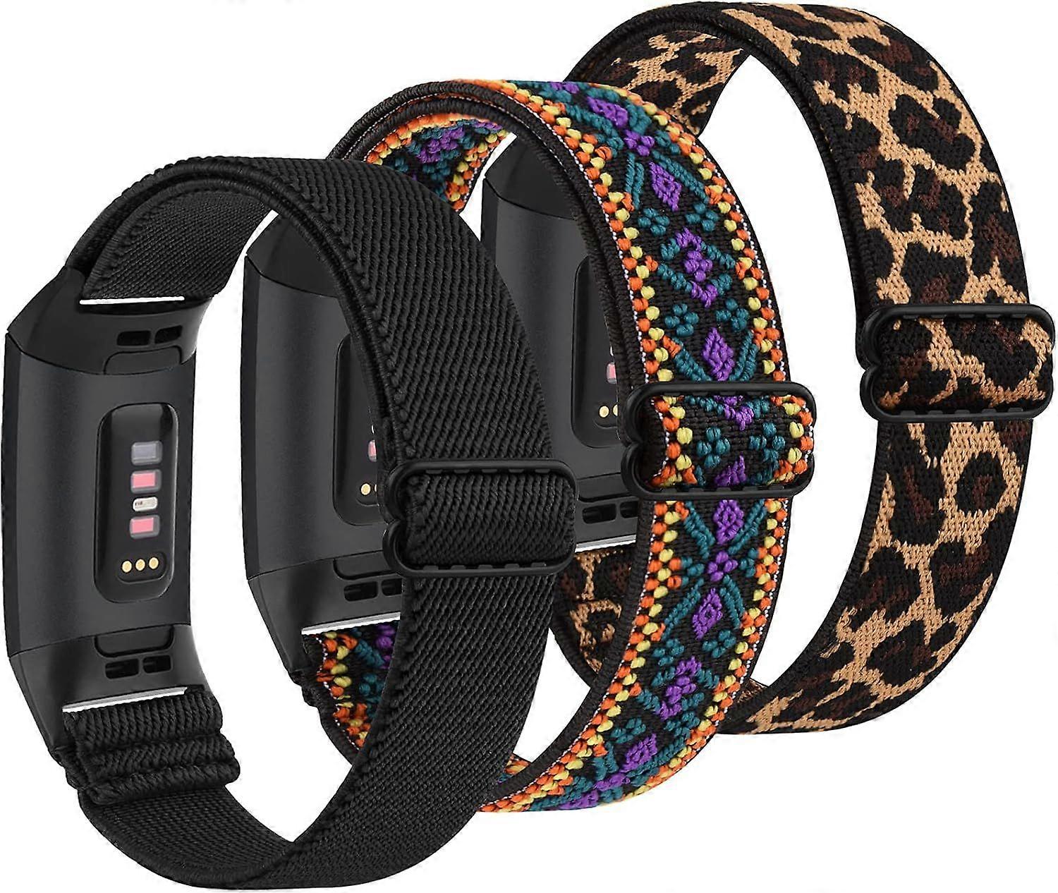 Stretchy Strap Compatible with Fitbit Charge 3/4 - Adjustable Elastic Replacement Wristband