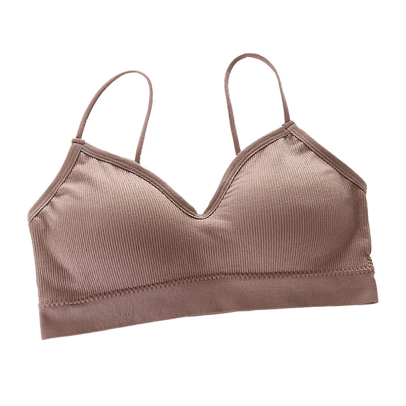 Sports Girl Bralette Underwear Strap Plain Color Backless Girl Wireless Bra for Daily Life Cameo Brown Free Size(88.2‑132.3lb)