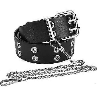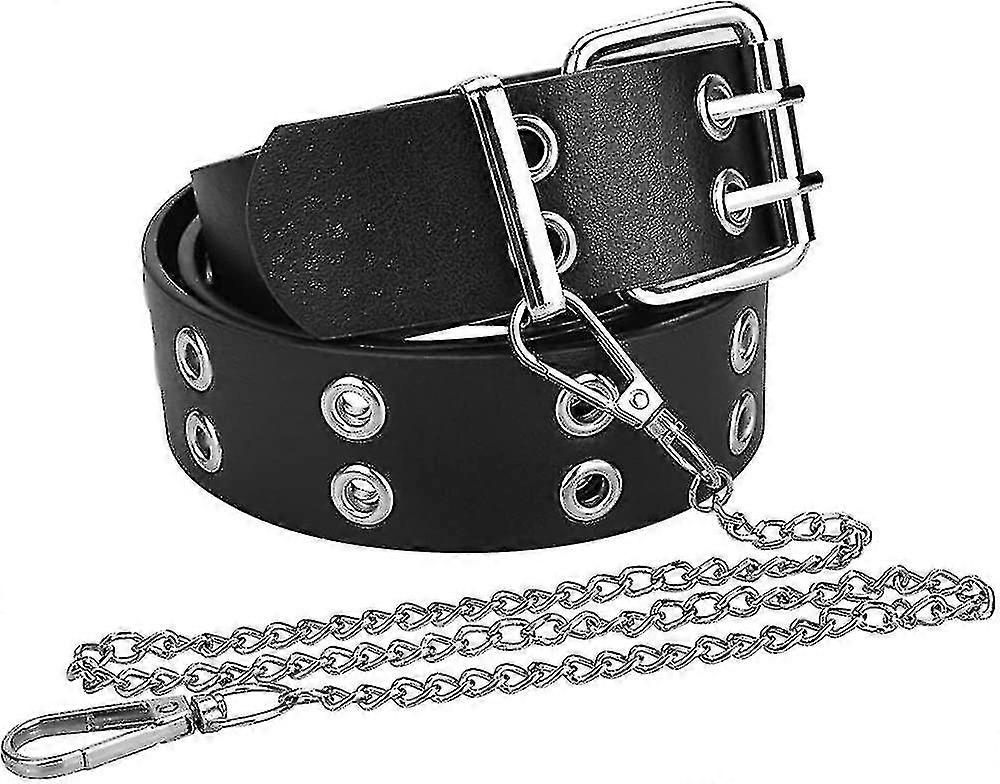 Double Grommet Belt,eyelet Belt,black Belt,pu Leather Punk Belt,women Girls Waist Belt Wit