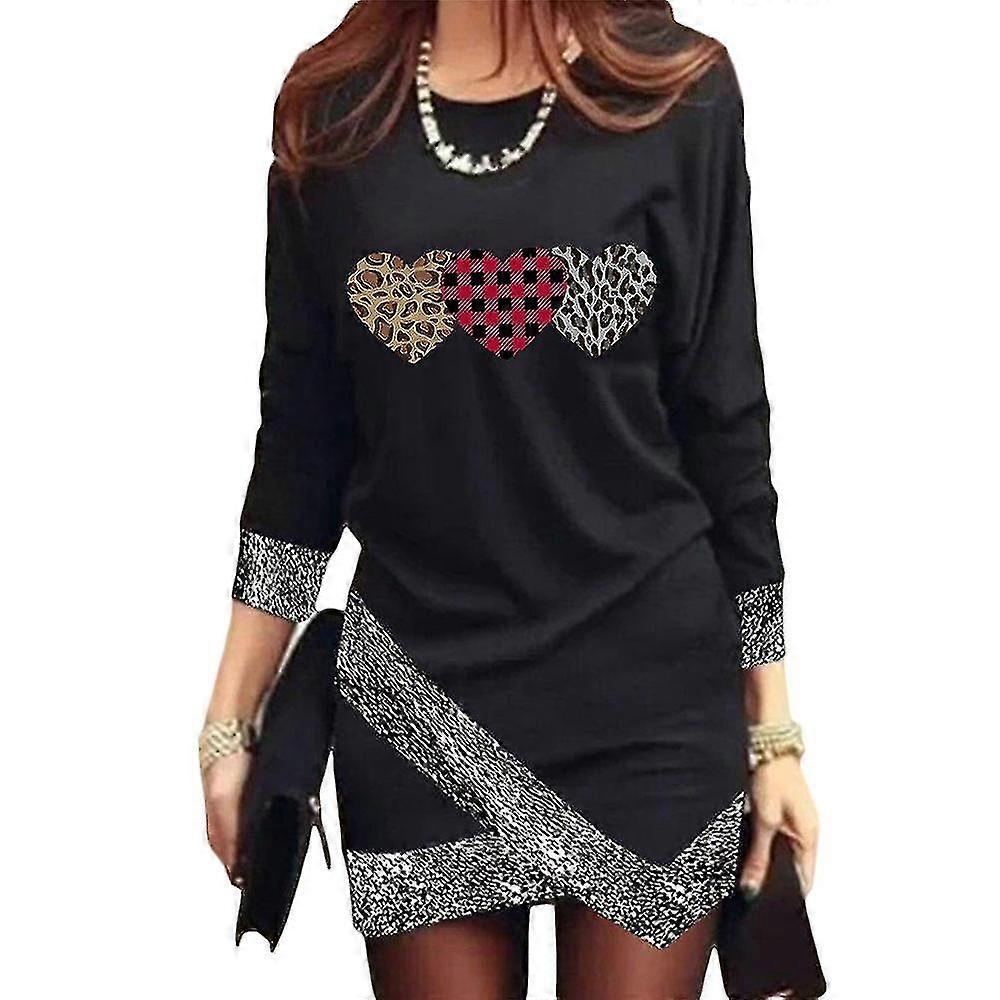 Christmas Party Women Printed Long Sleeve Mini Dress Irregular Dresses