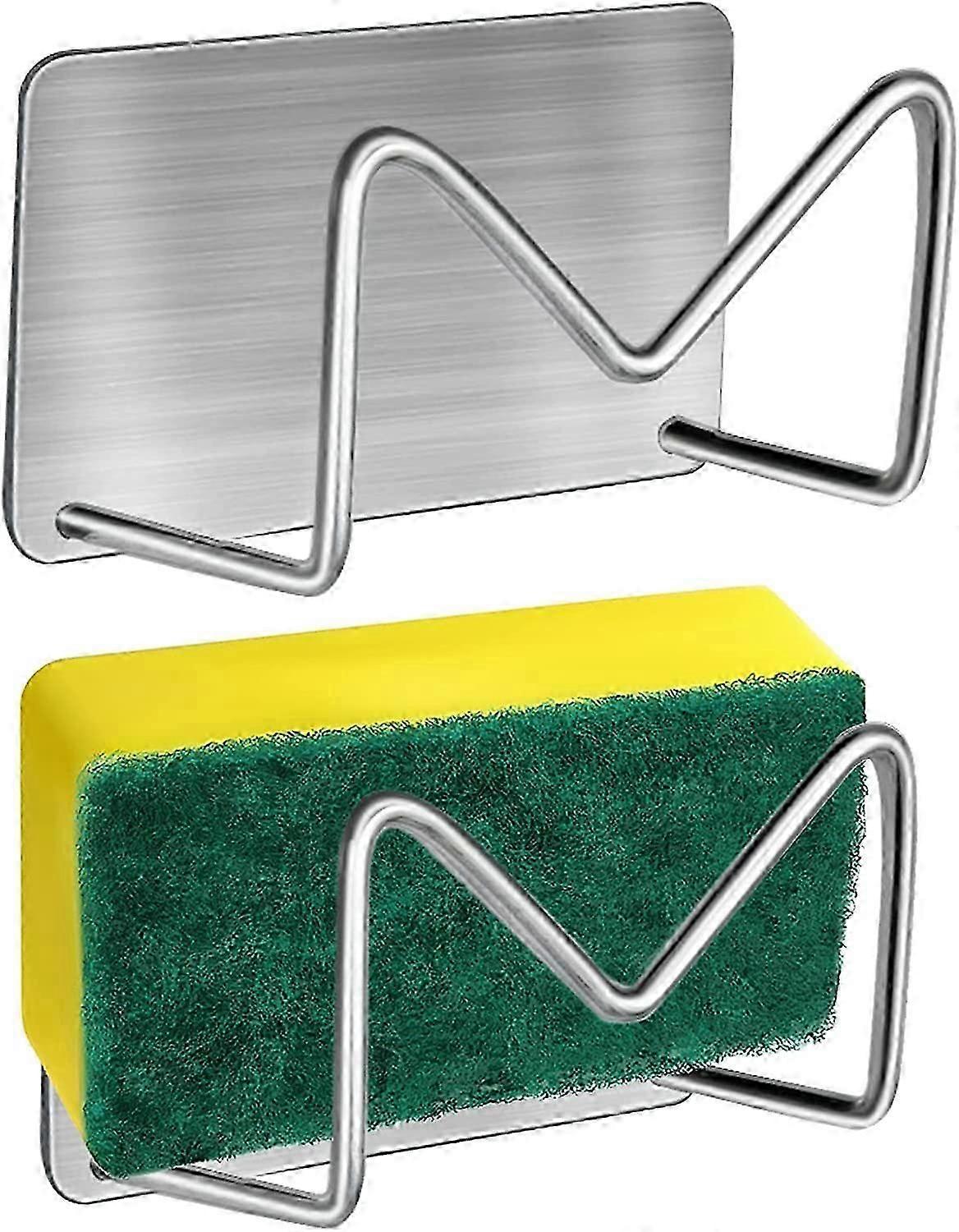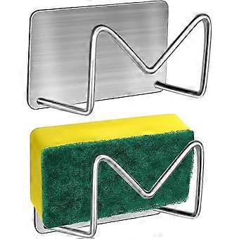 Pack Self-Adhesive Sponge Holder, 304 Stainless Steel Kitchen Sink Sponge Holder No Drilling Sponge Holder for Drainer - Silver