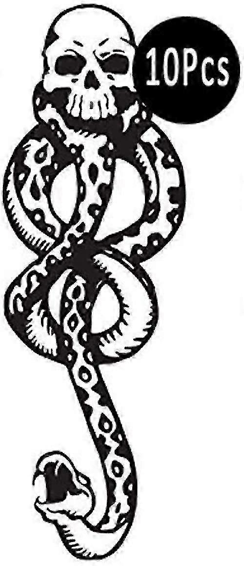 Pack Of 10 Magical Cursed Snake Skull Black Label Death Eater Temporary Tattoos