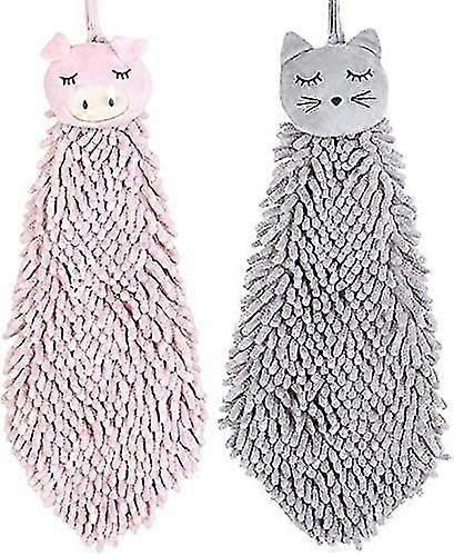 Pack Of 2 Cute Animal Hand Towels For Kitchen And Bathroom, Soft And Plush Microfibre Material, Suitable For Both Kids And Adults (cat And Pig)