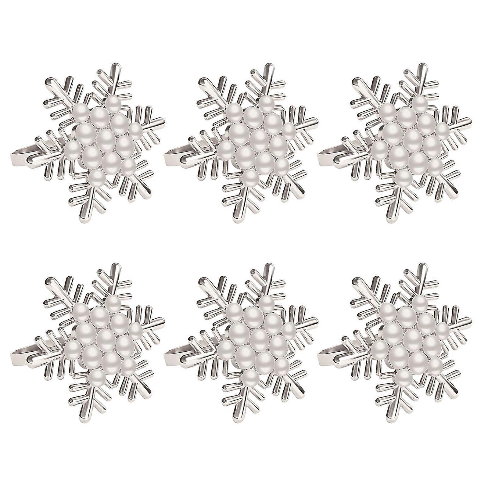 Pack of 6 Napkin Rings Christmas Snowflake Napkins Holder Metallic Napkin Buckle Sophisticated Plating Accessories