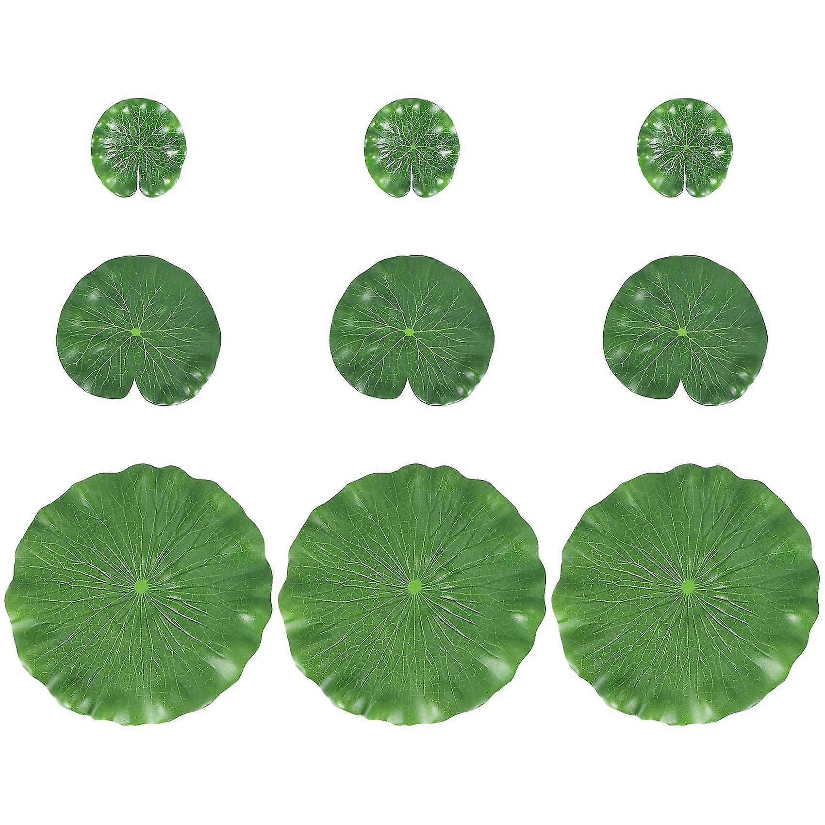 Pack Of 9 Artificial Floating Foam Lotus Leaves Water Lily Pads Ornaments Green | Perfect Compatible Patio Koi Fish Pond Pool Aquarium Home Garden Wed