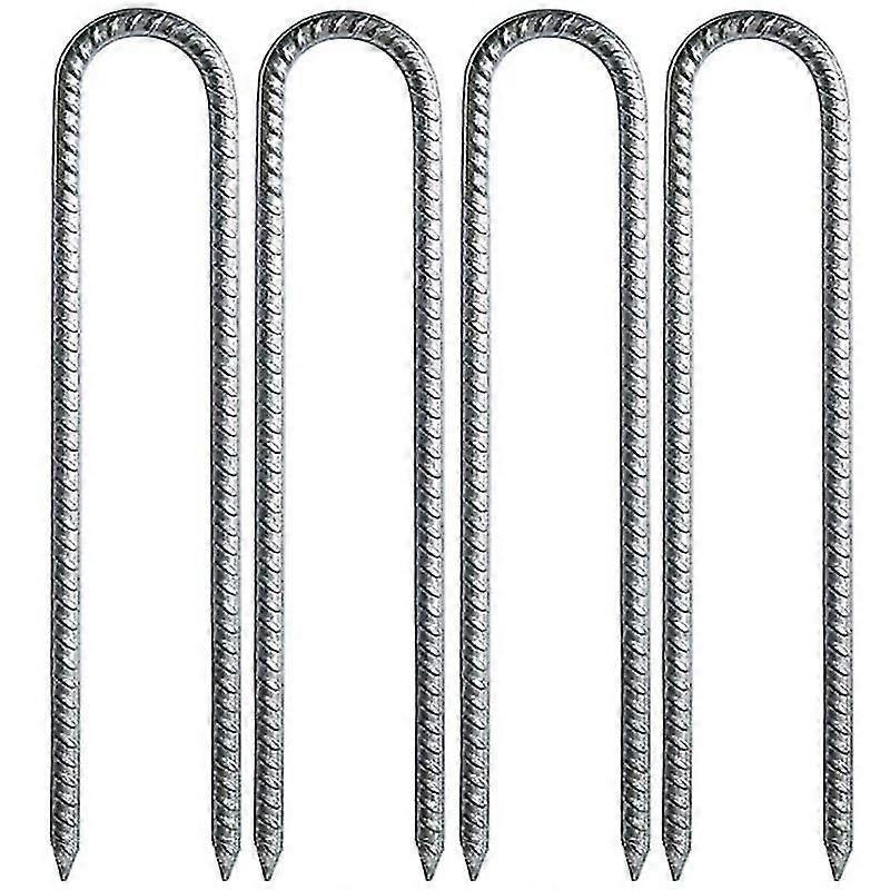 Size of Ground Stakes: 30cm long ground stakes,and we provide 4 pieces ground stakes in package, enough quantity for daily use Galvanized Steel Ground Stakes: Our ground stakes are made of galvanized steel, fully galvanized meaning they will not rust in wet/damp conditions making them tougher and more durable, can be use for long time U Shaped Trampoline Pegs: This heavy duty ground anchors with friction grip ribbing to ensures that the stake can be secured deep for maximum sturdiness. Ideal durable U hooks for pegging down large tents/gazebos/marquees Easy to Install: The U Hooks with chisel point end is easy to insert into weed barrier mat, plastic sheeting and ground. Just use hammer in, no auxiliary tools required. Save your time and effort for other important thing Wide Application: Trampoline pegs is great for helping you hold down the trampolines, swing sets,Ground Anchor, slides,fences, yard decorations, tents, nets,dig defence,canopy stakes, tent stakes,fence stakes anchors. Prevent the tents or sheds to slipping away in winds Why Choose Us ? 1. Durable with Long Time Use: garden pegs are made of galvanized steel ,that is not easy to bend, stay rust free and water resistant , more durable and tougher. 2. U Hooks with Chisel Point End: The heavy duty ribbed hooks can secure the tent more steady than common ,the chisel point end make the rebar stakes insert into hard clay or rocky soils easily. 3. Wide Application: The gardening ground rebar stakes are very useful tool for outdoor activity, our U hooks can help you hold down the swing sets, slides, fences, yard decorations, tents, nets, trampolines, landscape edging ,sports training equipment ,gazebos ,garden fence ,prevent the tents or sheds to slipping away in winds. Size : 30 cm long Color : Silver Weight : 280g Package includes: 8pcs * tent pegs