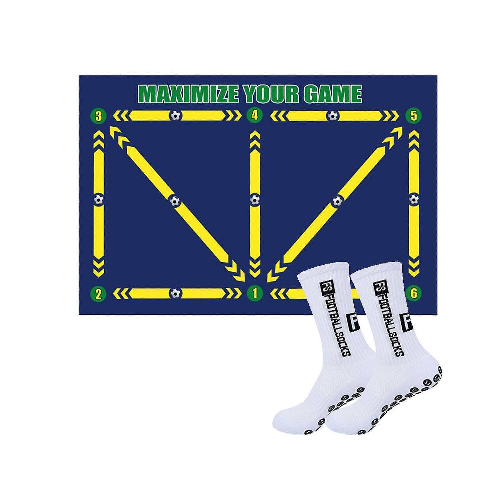 Football Footstep Training Mat Foldable Football Mat for Indoor Outdoor Home with socks Dark Blue