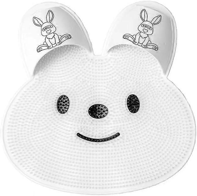 Multifunctional silicone massage mat, rabbit shaped shower foot massager floor mat, wall mounted silicone foot massage mat brush with anti-slip suctio