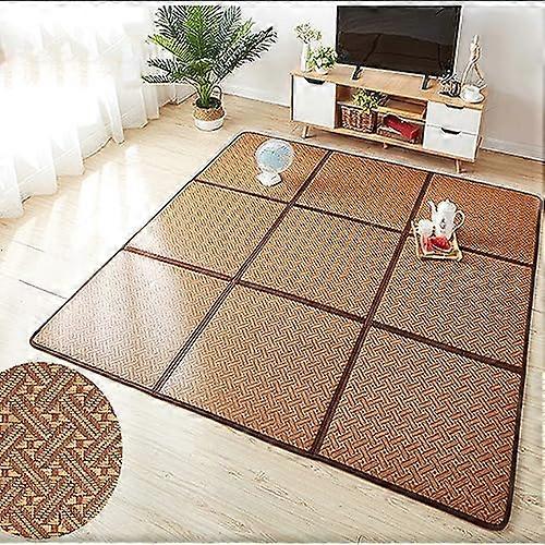 Traditional Japanese Tatami Mat, Foldable Futon Floor Mat for Yoga, Meditation, Natural Rattan, NonSlip 120x120cm (4) Maroon
