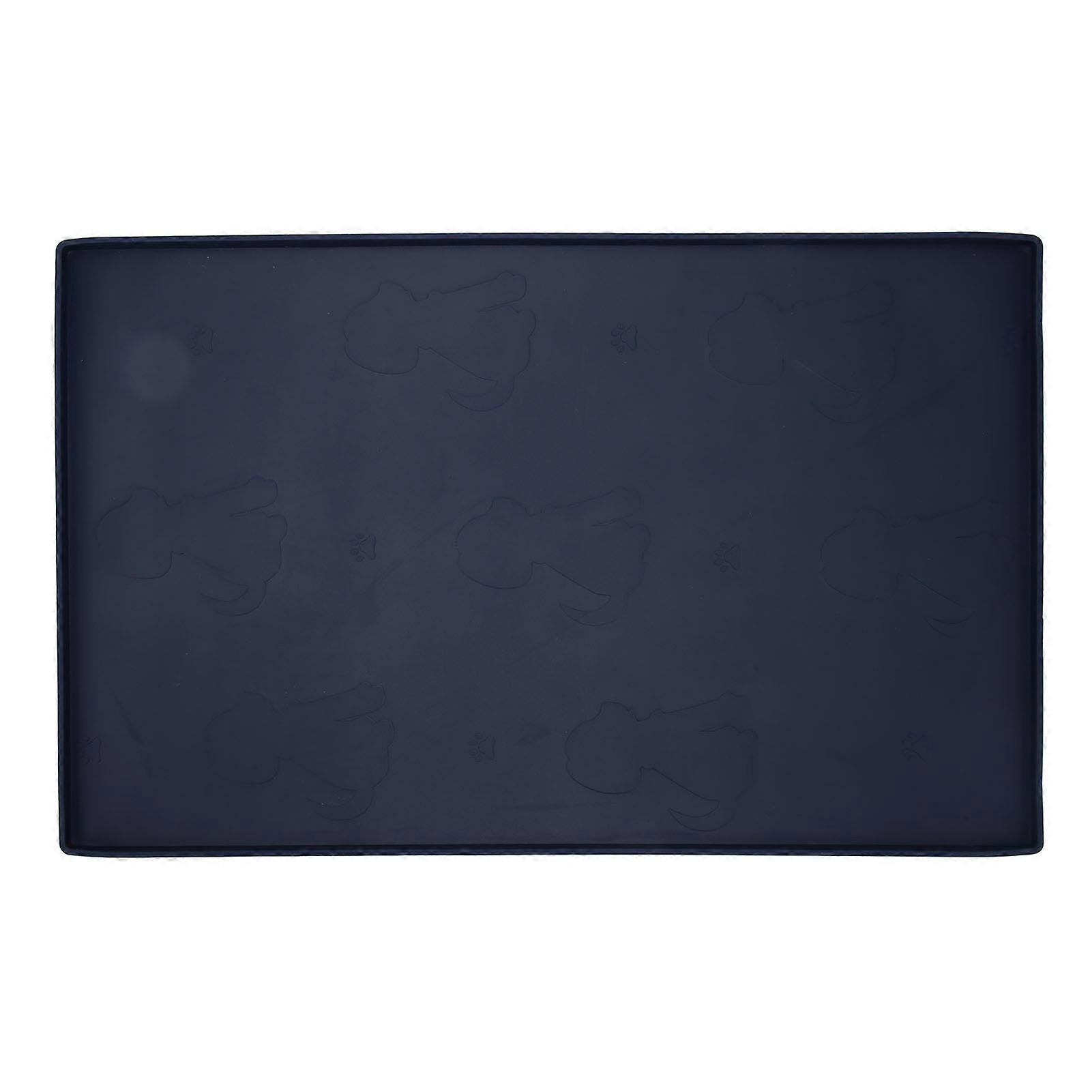Pet Feeding Mat Puppy Pattern Waterproof Slip Resistance Small Food Grade Silicone Dog Food Mat for Floors Dark Blue