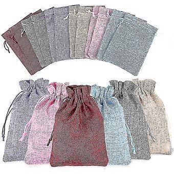حقائب الجوت 36 قطعة حقائب طبيعية ملونة مع رباط تضييق حقيبة جوت 13 × 18 سم أكياس قماش لملء أكياس الكتان لمجيء التقويم مجوهرات صالح