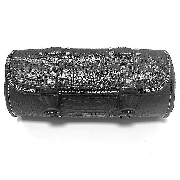 Motorcycle Handlebar Bags with Quick Release PU Crocodile Leather Rolling Fork Bag Waterproof Tool Bag (1pc, black)
