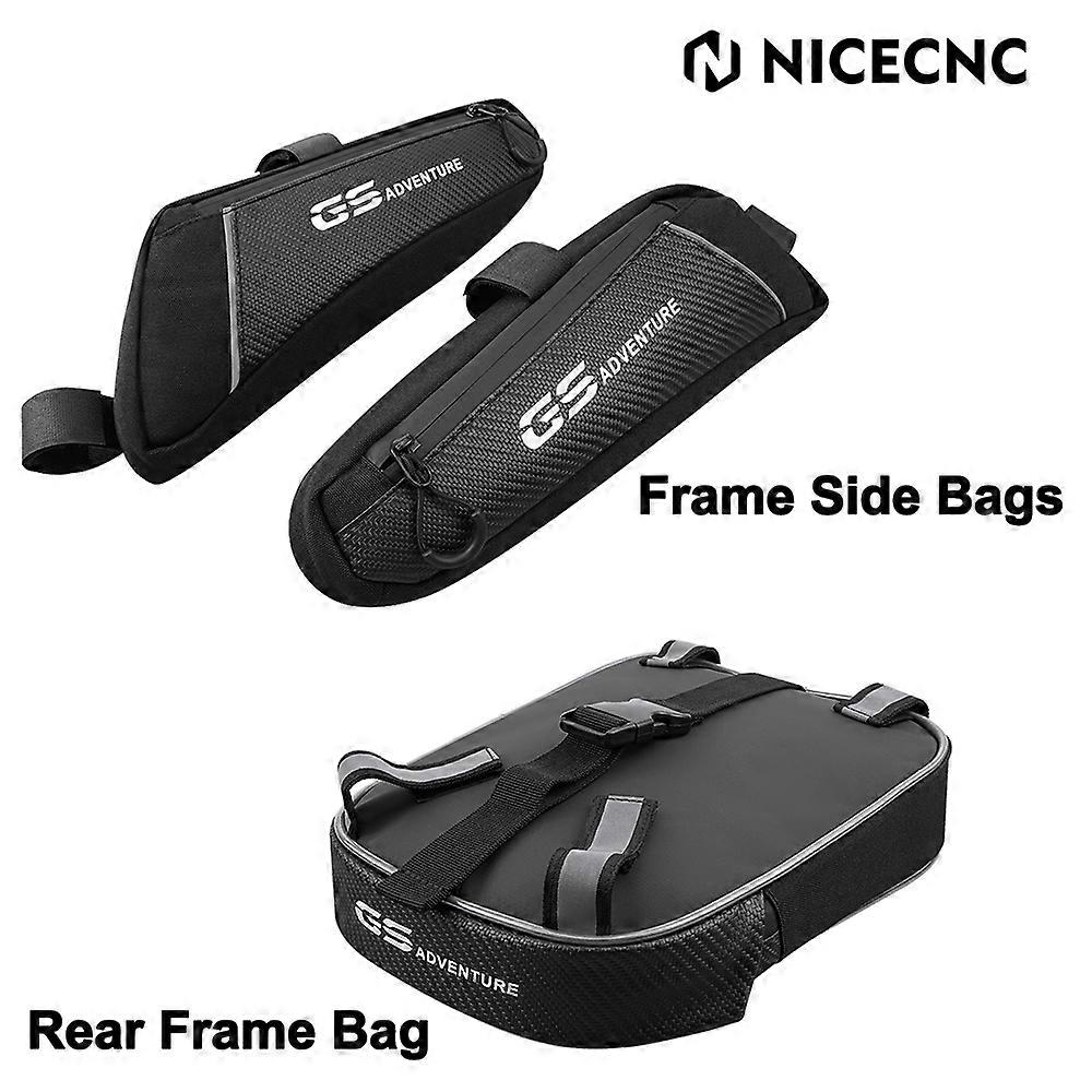 Item Specifications: Condition: 100% Brand New Material: 900D PVC Oxford Fabric, PVC cloth, carbon fibre Mounting Type: Rear Frame Mount Item Type: Motorcycle rear frame Bag Package Included: Kind One: 1X Motorcycle Frame Side Bags Kind Two: Rear Frame Bag + Frame Side Bags Kind There: Rear Frame Bag + Frame Side Bags+Faring Saddle Bags Fitment: Replacement for : FOR BMW R 1200 GS 2013-2023 FOR BWM R 1200 GS LC Adventure 2014-2023 FOR BMW R 1250 GS Adventure 2018-2023 Features: Multi-protection Comes with 4 reflective straps and 1 quick release buckle to enhance the stability when you riding fast. Besides, the unique carbon fiber fabric cover keeps out mud from being stuck, greatly prolongs the service life. Waterproof & User-friendly Zipper Waterproof SBS zippers with a seal to keep out rainwater, dirt and dust. Prevent from getting stuck, greatly prolonging the service life. Shaped pulling string, easy to pull when you wear gloves. Longer Lifespan Upgraded 900D PVC Oxford, carbon fiber on the front side, PVC cloth on the back side, easily resist light rain, no fading by UV exposure, anti-scratch. Last much longer than other flimsy small tool bags made of 210D, 420D, 600D normal Oxford fabric Large Capacity Spacious compartment that allows you to store repairing tools, wallet, documents, glasses, keys, power bank, mobile phone.