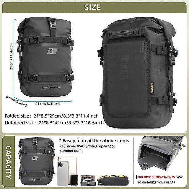 Brand:Rhinowalk NAME100% waterproof motorcycle crash bar dry Motorcycle Bags ITEMMT2206 FABRIC PVC Polyester WEIGHT 510g COLORBlack/Olive SIZE Folded size:21*8.5*29CM (L*W*H) Unfolded size:21*8.5*42CM (L*W*H) INCLUDED IN DELIVERY Main Motorcycle Bags*1pc/Shoulder strap*1pc 01-FULLY WATERPROOF IMPERMEABLE 02-4FOUR MOUNTING CONFIGURATIONS 03-CAM BUCKLE SECURELY FASTENED 04-VERSATILE PORTABILITY QA 1.This product can be installed directly on the barrier and the rear seat, but whether it matches your motorcycle, you can check the details page, or consult customer service 2.This product cannot be used directly as a tank Motorcycle Bags and a saddle Motorcycle Bags.