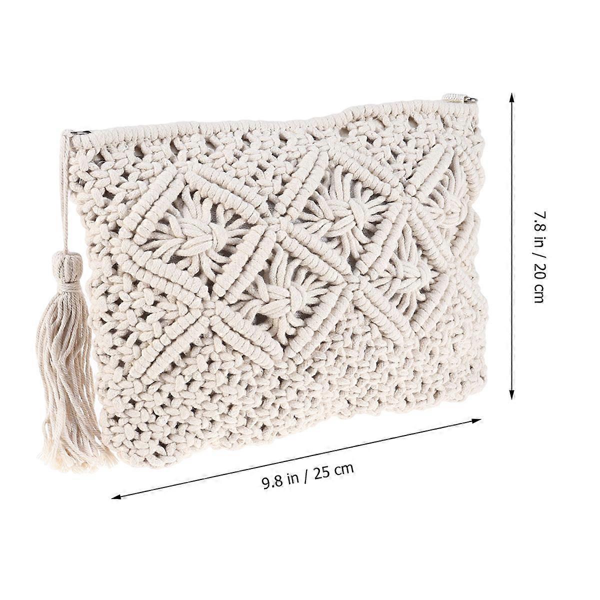 Bucket Bags for Women Cotton Woven Handbag Hollow Clutch Bag with Tassel Zipped Closure Summer Travel 25x20cm 1Set