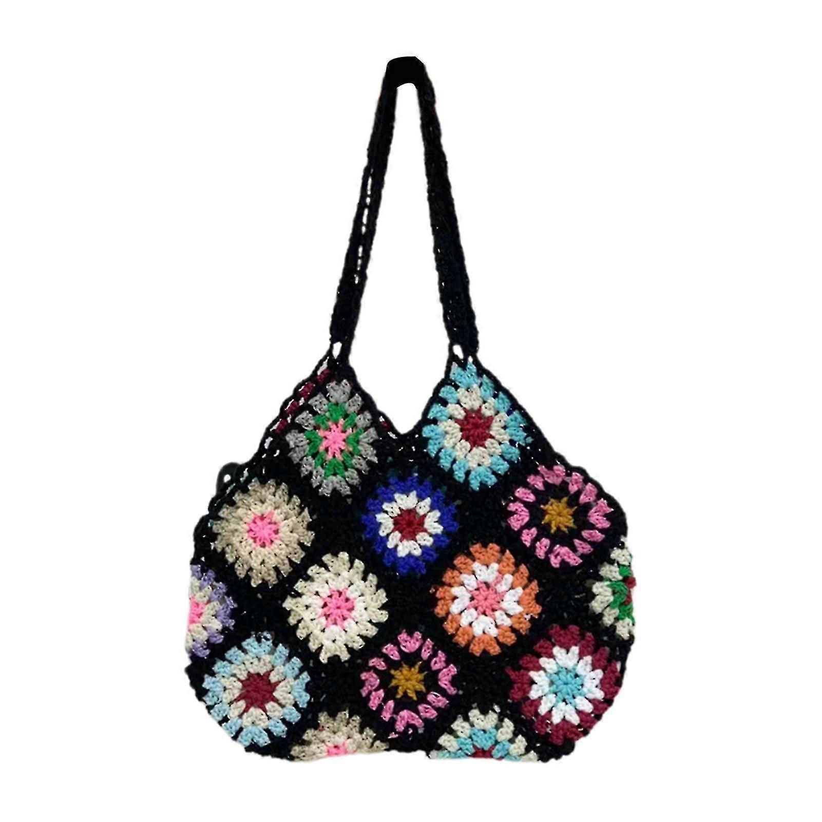 Ladies' Crochet Bags, 33×26 cm, Colorful Flower Design, Wear-resistant and Durable