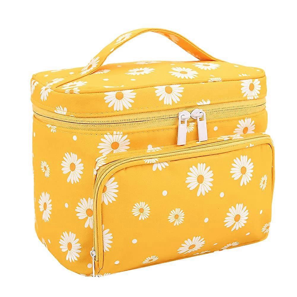 Makeup Bags for Women Large Cosmetic Bags with Brush Holders Travel Make up Bag, Yellow, Da QOI