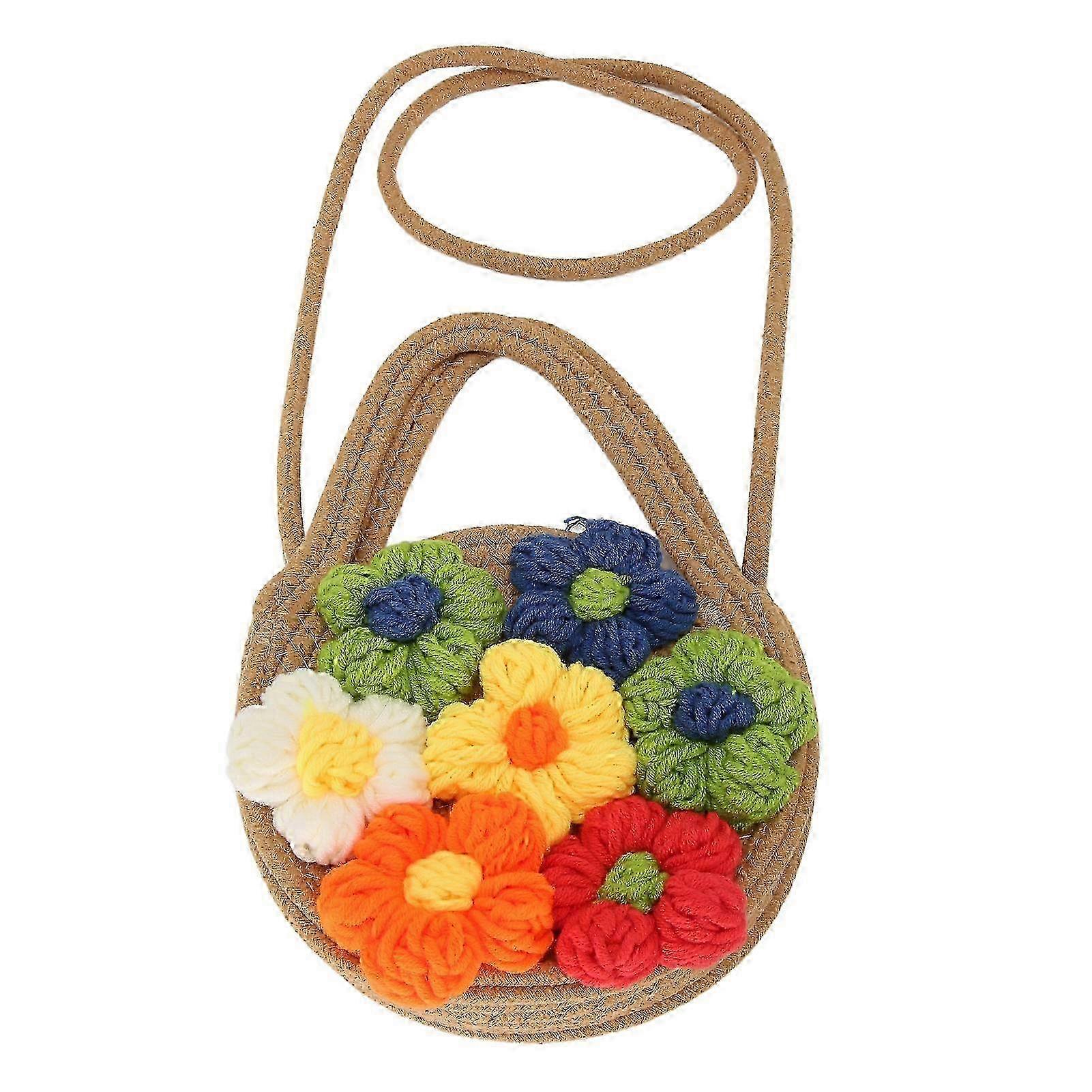 Flower Straw Beach Bag for Women Cute Fashion Large Capacity Straw Shoulder Bag for Summer Outdoor Khaki