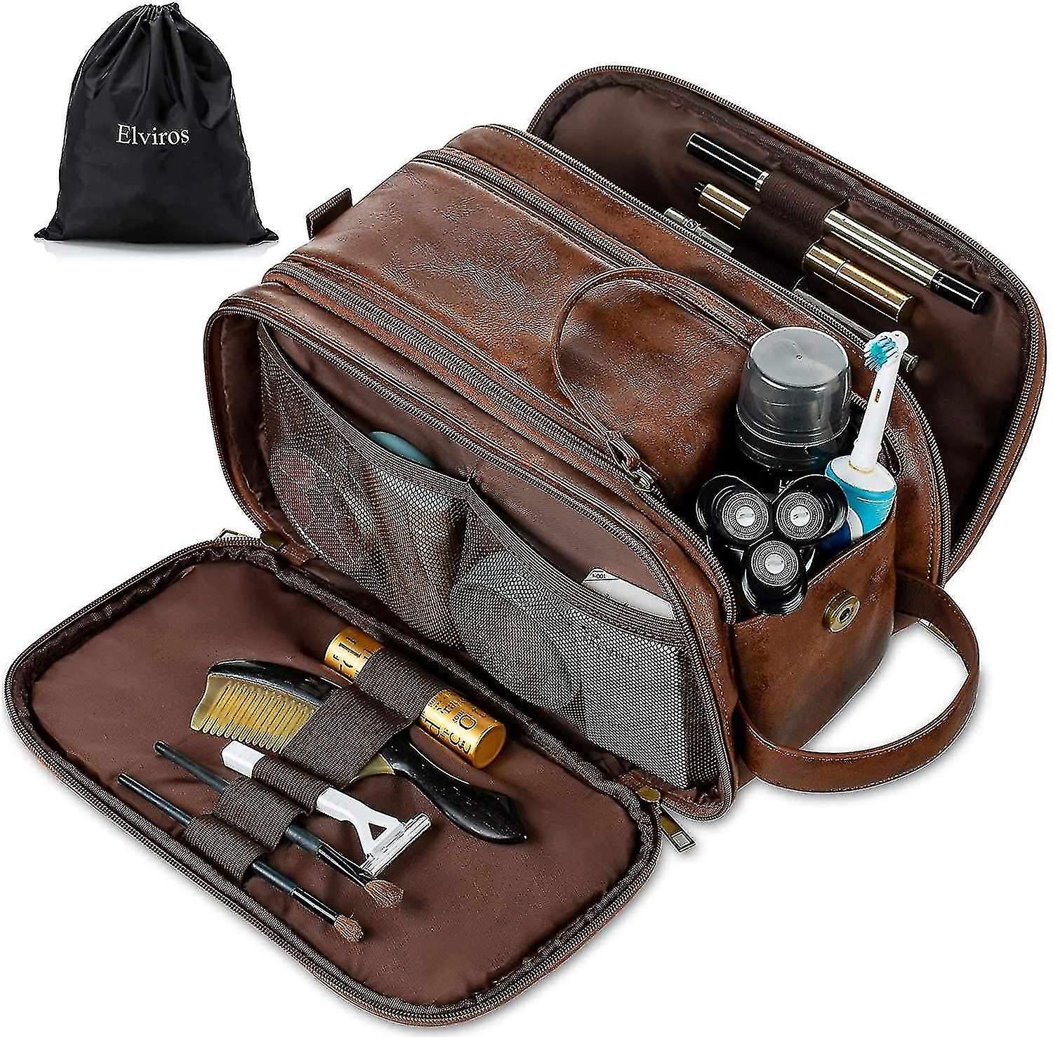Water-resistant Leather Toiletry Bag For Men Large Travel Wash Bag Shaving Dopp Kit Bathroom Gym Toi