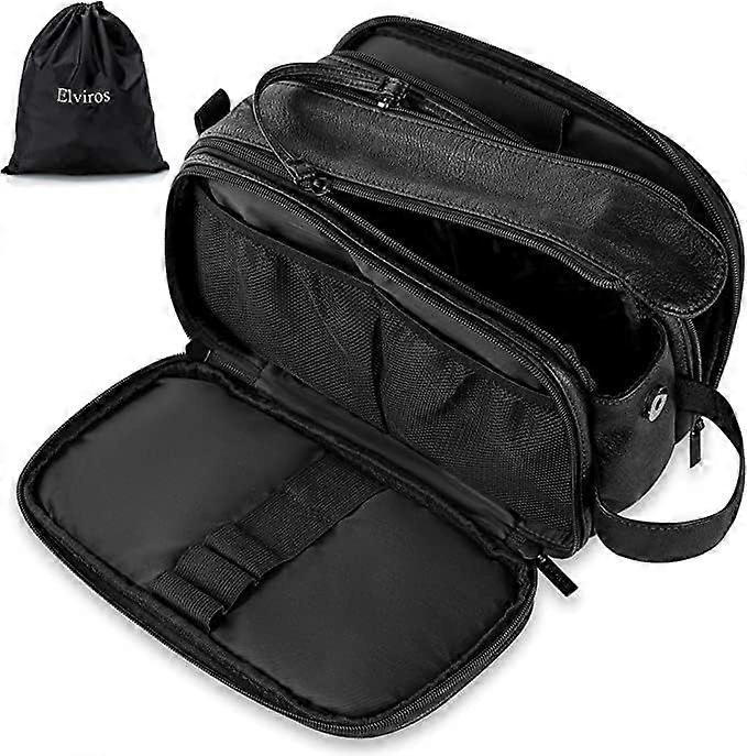 Water-Resistant Leather Toiletry Bag for Men Women Large Travel Wash Bag Shaving Dopp Kit Bathroom Gym Toiletries Makeup Organizer with Free Wet Dry B