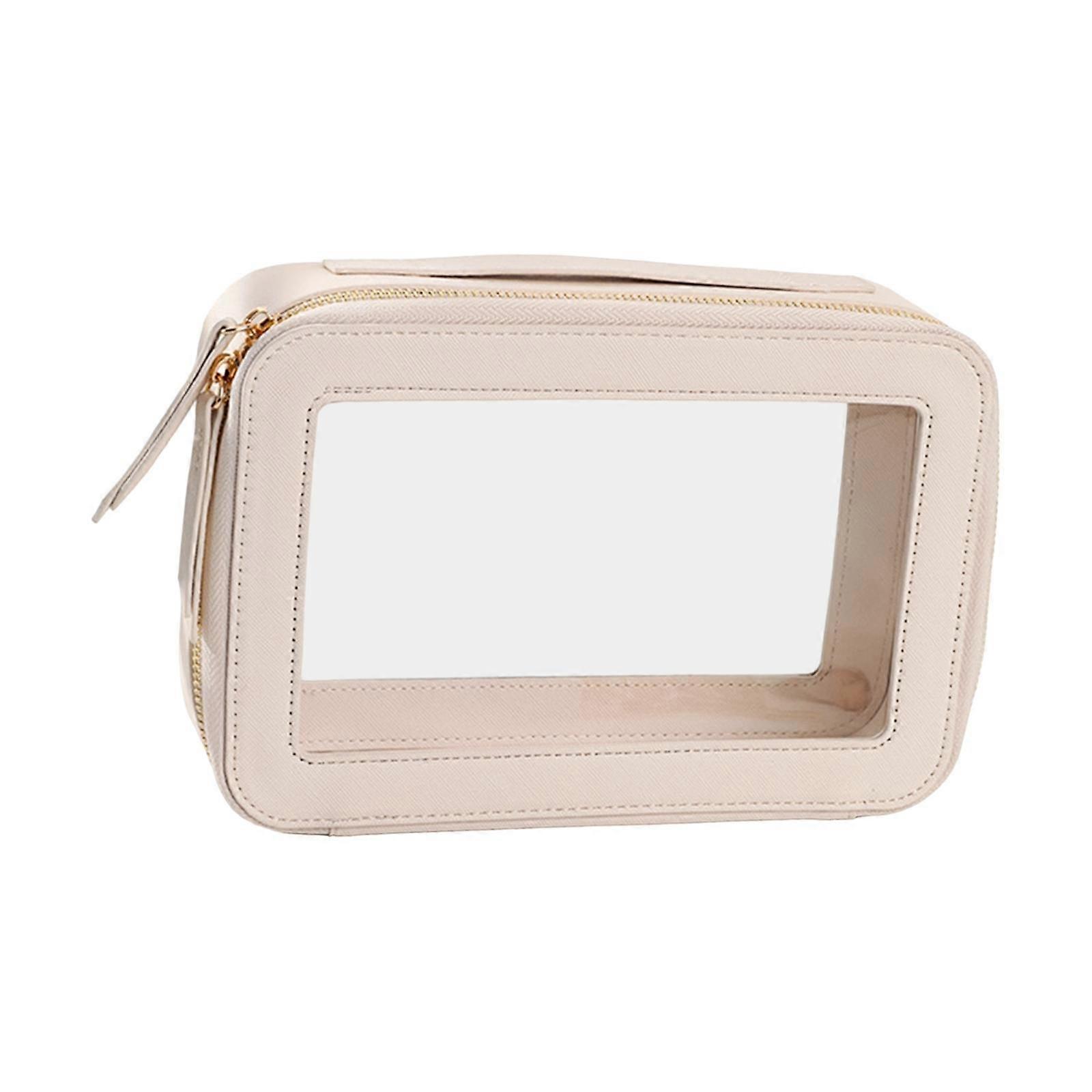 Toiletry Bag Women Girls Gift Clear Makeup Bag for Makeup Brushes Essentials Beige White